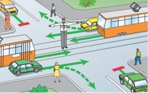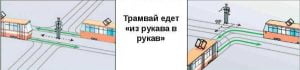 Только при этих условиях траектория движения трамвая и безрельсового ТС может пересечься.