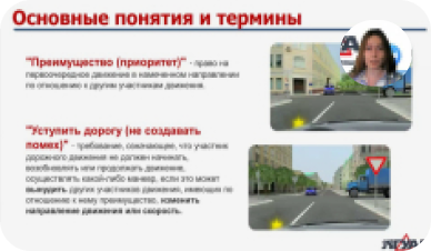 Теория проходит онлайн в ZOOM. Преподаватель объясняет все нюансы ПДД на реальных примерах. Уроки можно смотреть в любой последовательности и в записи.